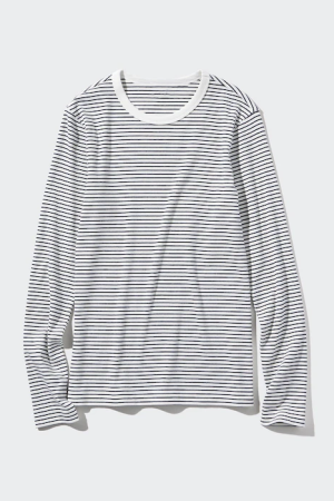 Soft Ribbed Striped Crew Neck Long-Sleeve T-Shirt