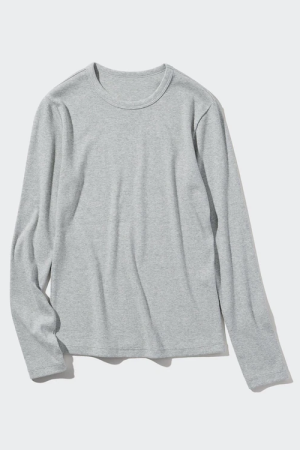 Soft Ribbed Crew Neck Long-Sleeve T-Shirt