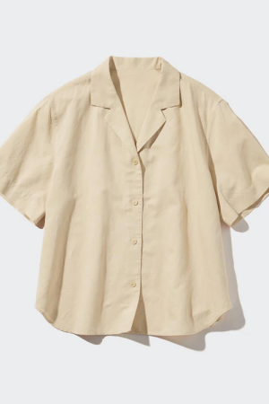 Linen Blend Open Collar Short Sleeve Shirt