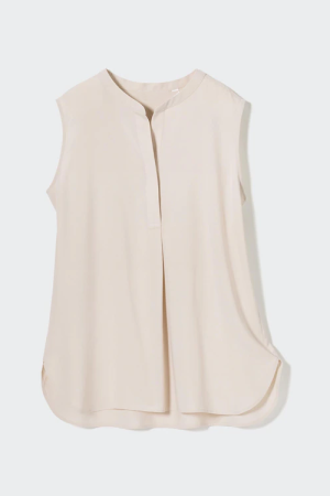 Rayon Skipper Collar Sleeveless Blouse
