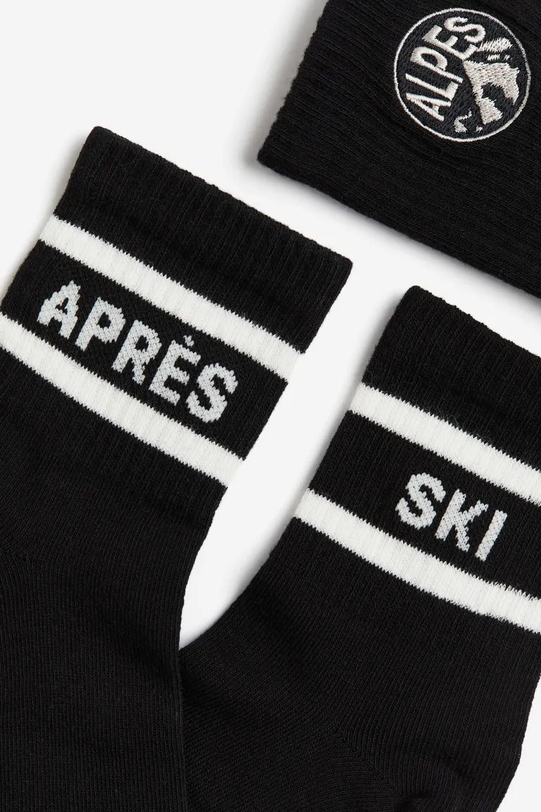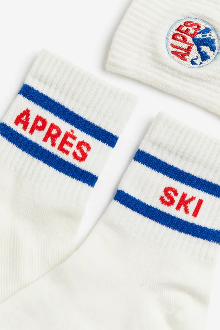 Socks in a soft, fine-knit cotton blend with a ribbed shaft and elasticated tops to keep them in place.