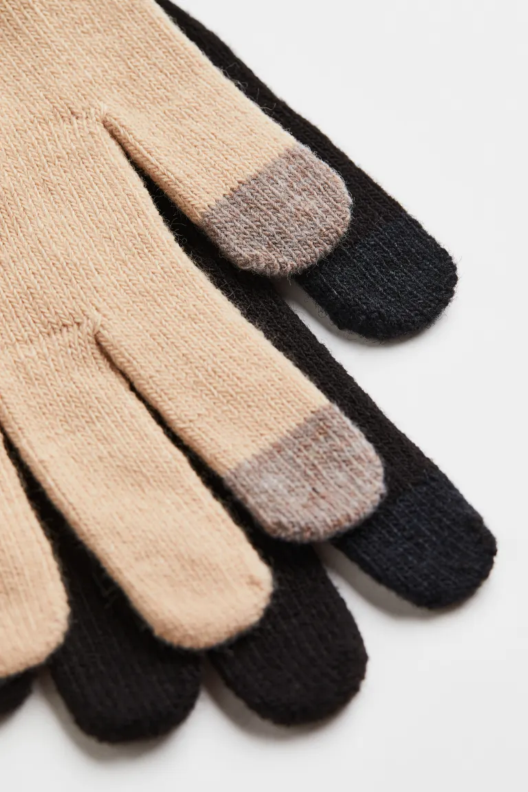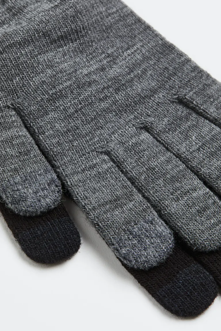 Gloves in a soft, fine knit with ribbed cuffs. The tops of the thumb and index finger are in touchscreen-compatible material.