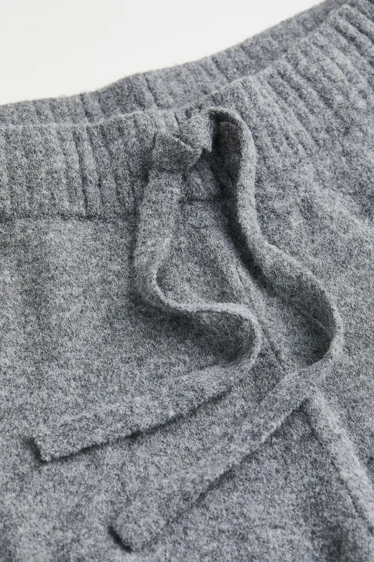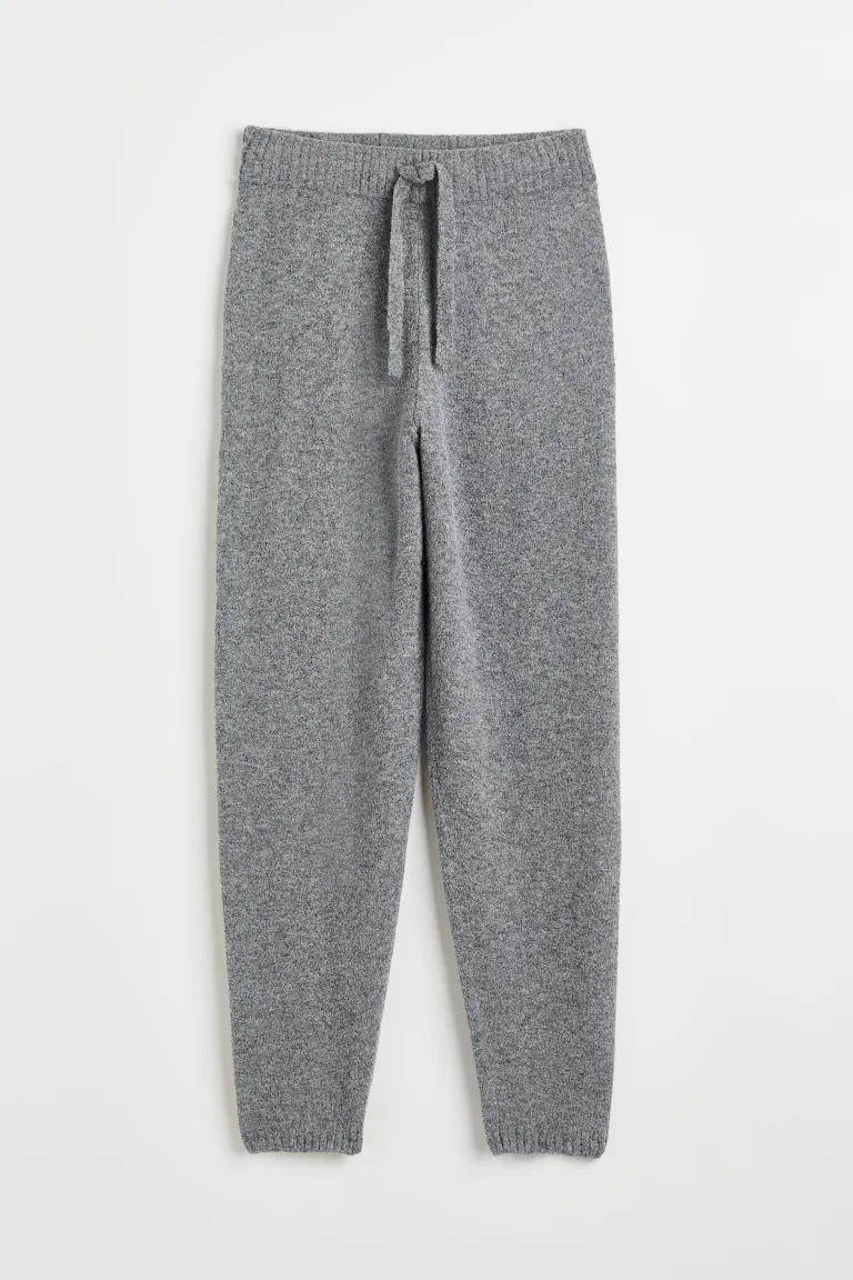 ①Joggers in a soft, lightly brushed fine knit containing some wool.