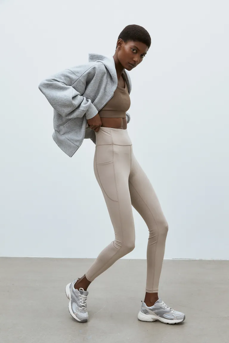 ②Relaxed fit with diagonal side pockets and wide legs with pleats at the top and creases down the front.