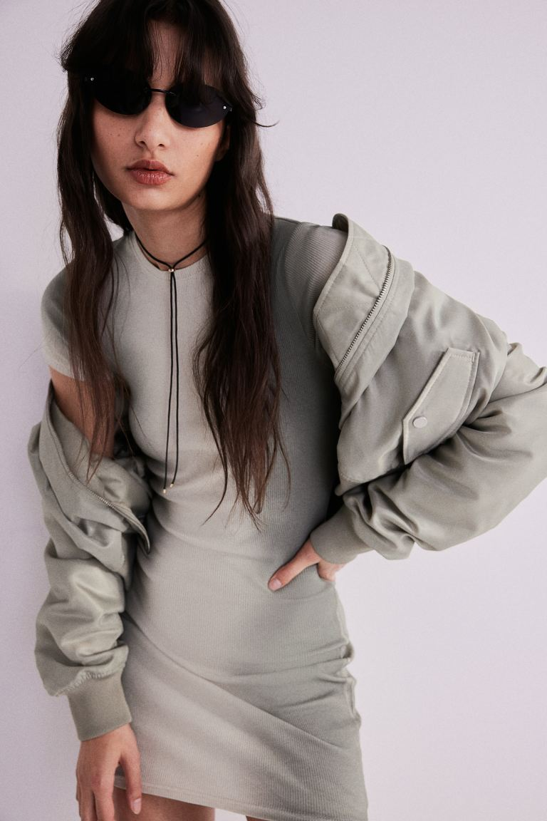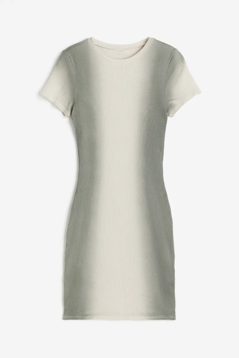 Short, fitted dress in ribbed jersey with a round neckline, short sleeves and a straight-cut hem.